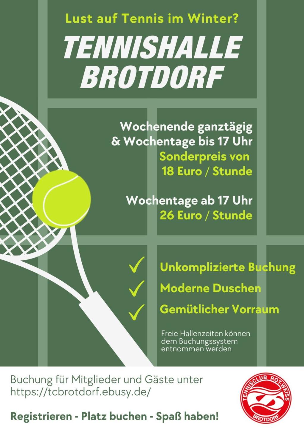 Hallenbuchungen bzw. Auskünfte über noch freie Stunden sind über unser Buchungssystem möglich.
